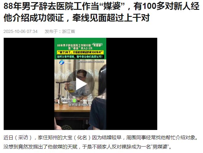 88年男子辞去医院工作当“媒婆”,有100多对新人经他介绍成功领证,牵线见面超过上千对